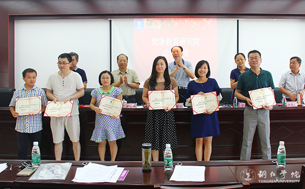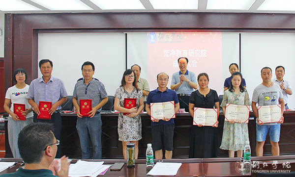 与会领导为梵净教育研究院研究员代表颁发聘书
