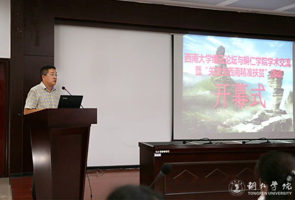 由重庆市社会科学界联合会、西南大学缙云论坛与beat365官网主办,beat365官网经济管理学院承办的“西南大学缙云论坛与beat365中国唯一官网学术交流暨‘关注大西南精准扶贫’活动”于8月1日上午在beat365官网行政楼8501会议室举行。西南大学缙云论坛主席王志章教授等一行17人,beat365官网副校长代亮、各部门领导、专业学院师生参加活动。活动由beat365官网经济管理学院院长杨建主持。