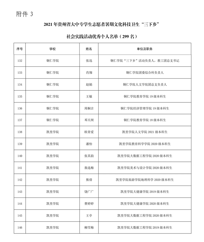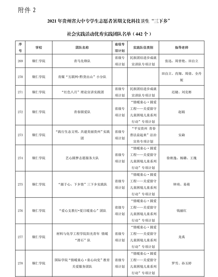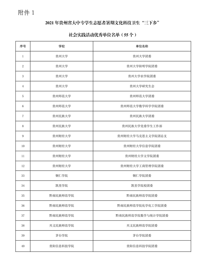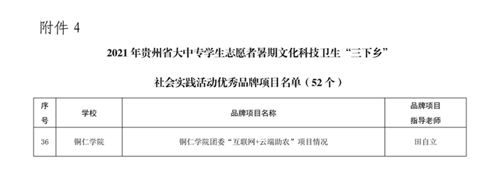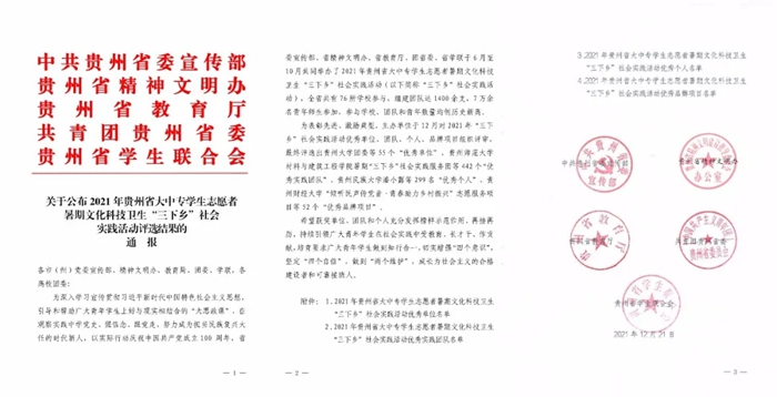 近日,省委宣传部、省精神文明办、省教育厅、团省委和省学联联合印发了《关于公布2021年贵州省大中专学生志愿者暑期文化科技卫生“三下乡”社会实践活动评选结果的通报》,对表现突出的先进集体和个人进行表彰。beat365官网团委被评为“优秀单位”,17个团队被评为“优秀实践团队”,6名师生被评为“优秀个人”,1个项目被评为“优秀品牌项目”。
