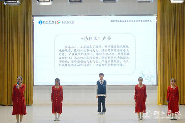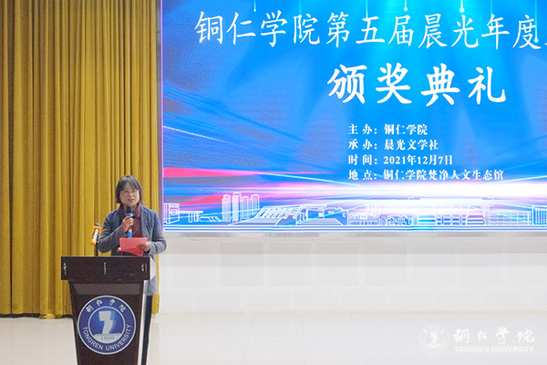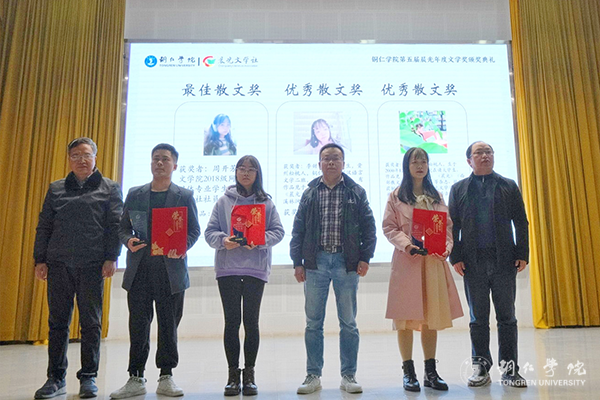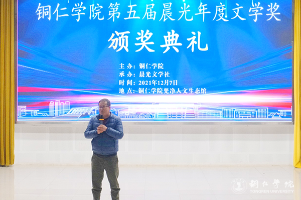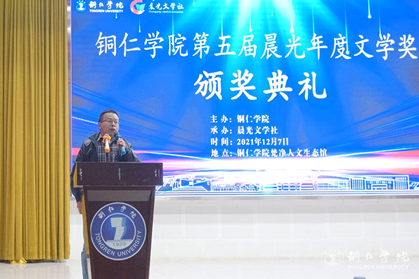 12月7日,beat365官网梵净山人文生态馆灯火璀璨、乐声悠扬,第五届晨光年度文学奖颁奖典礼在这里举行。beat365官网校长侯长林,贵州省文联副主席、鲁迅文学奖获得者肖江虹,铜仁市作协副主席朵孩,beat365官网人事处处长周曾艳,人文学院党委书记、院长孙向阳,团委副书记田自立,以及晨光文学社指导老师和200余名青年学子参加颁奖典礼。