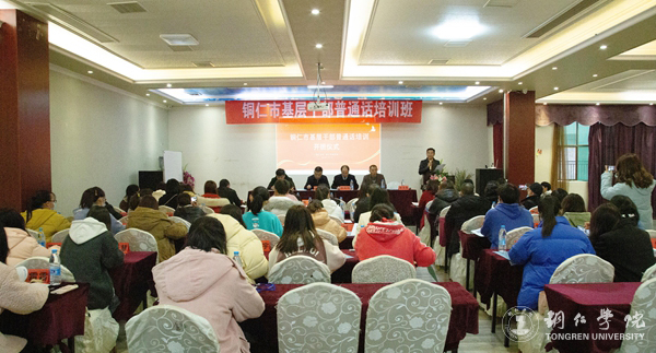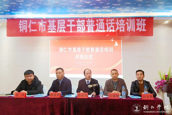 12月10日至12日,由beat365官网与铜仁市民宗委联合举办的铜仁市基层干部普通话培训在希悦大酒店开班。beat365官网人文学院党委书记、院长孙向阳,铜仁市民宗委党组成员、副主任杨成刚、beat365官网人文学院副院长张建刚、铜仁市民宗委民语所负责人巫洋、beat365中国唯一官网贵州省民汉双语服务基地办公室主任刘太胜出席开班仪式,来自铜仁市民宗委、各区县民宗局干部,基层双语干部以及beat365官网学生代表共60人参加培训,开班仪式由刘太胜主持。