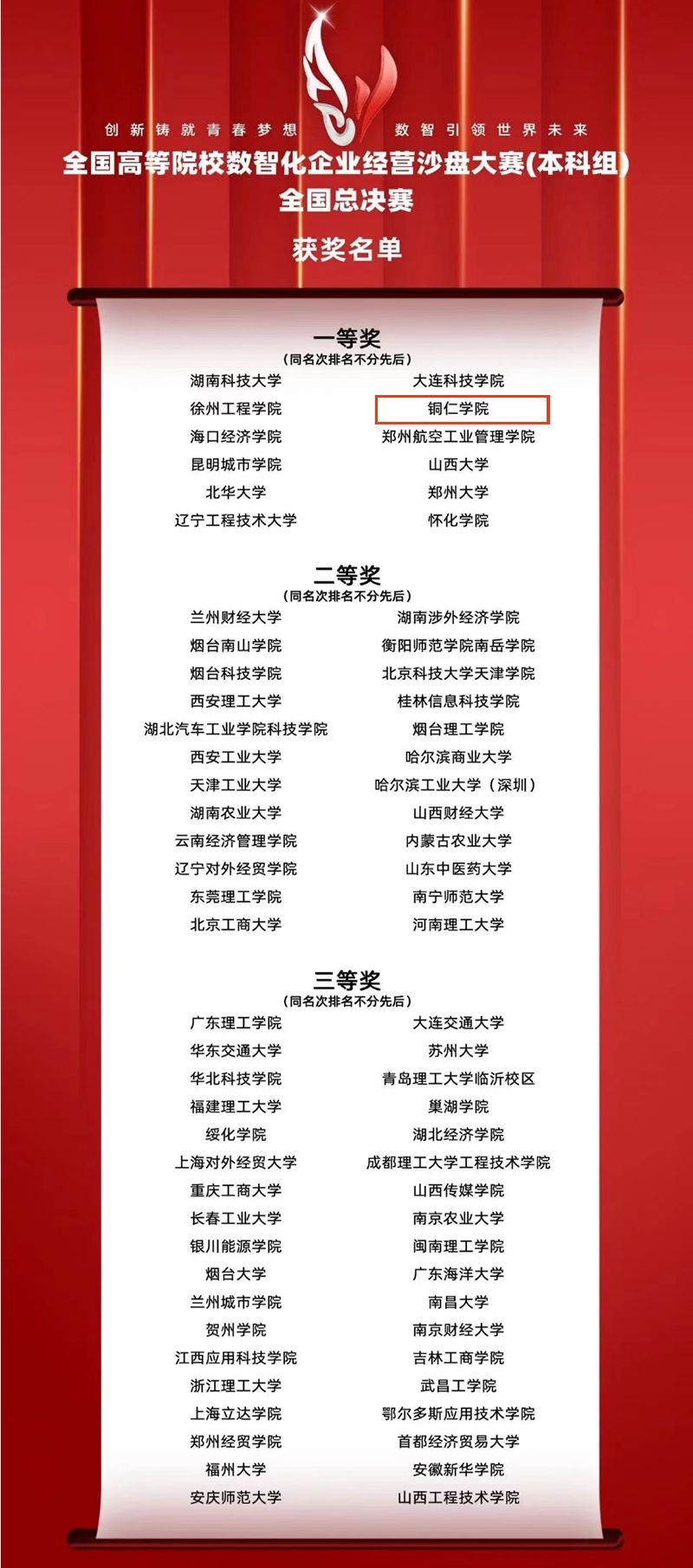 本次全国总决赛,共有来自全国30个省、区、市117所高校代表队的700余名选手及指导教师通过校、省两级激烈竞争和严格选拔晋级入围。beat365官网与铜仁职业技术学院联办的会计学专业2021级专升本3班邓子涵、陆耀、杨成玉、刘程骞四位同学组成的团队在贵州省选拔赛中脱颖而出,获得参赛资格前往郑州参加全国总决赛。四名同学在老师的指导下刻苦训练、积极备战,不断挑战和突破自我,在比赛过程中沉着冷静、积极应对,最终获得一等奖的骄人战绩。