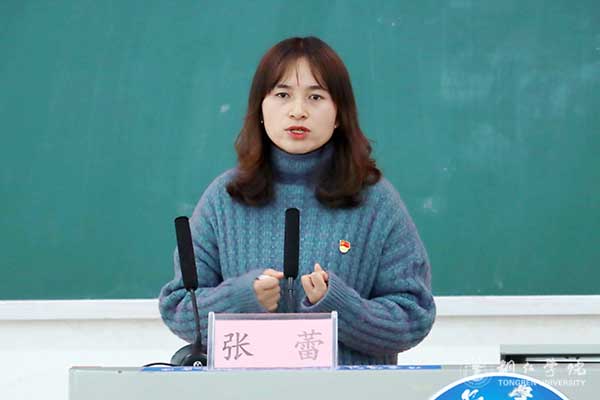 宣讲中,张蕾以自身经历说起,向同学们讲述了自己的学习、生活、工作等情况。她表示,自己能有今天的成就,首先要感谢党和国家,现在国家对贫困生的资助政策很好,正是有了党和国家帮助,才能让她和弟弟安心地读书学习;其次是要感谢生活中的好心人,无论是学校老师的帮助还是街坊四邻的关心,都让她感到似骄阳般的温暖。