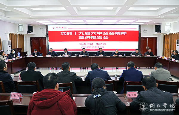11月18日,党委书记朱洪波围绕充分认识党的十九届六中全会的重大意义、深入领会全会精神、认真落实全会精神等方面,为学校党委班子成员、各二级学院党委(党总支)书记、各职能部门主要负责人集中宣讲党的十九届六中全会精神。