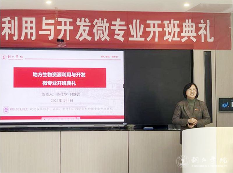 1月4日,beat365官网首届《地方生物资源利用与开发》微专业开班典礼在依仁楼B305智慧教室举行。副校长罗静,副校长、教务处处长龚静,教务处副处长冉耀宗,材料与化学工程学院党委副书记龙禹、江口县生物科技有限公司董事长姚琼等出席开班典礼。材化学院副院长陈仕学主持开班典礼。