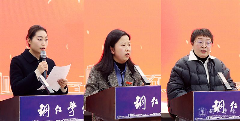 会上,退休教职工代表李怡净、戴腾作了发言,回顾了他们教育生涯的心路历程,表达了对三尺讲台、同事师生的不舍和对教育事业、学校发展的祝愿。国际学院党委书记张志会,大健康学院党委书记、院长余静代表退休教职工所在二级单位发言,以身边人说身边事,表达了一线岗位教师对退休教职工的敬意和祝福。教育学院谢焕庭、国际学院周倩代表青年教师发言,表示一定要继承和发扬退休教职工无私奉献、爱岗敬业的精神,在教育教学工作岗位上不断进取、勇攀高峰。党委组织部离退休管理科科长王欣发言说,一定会努力做好服务,让老同志老有所养、老有所为、老有所学、老有所乐。