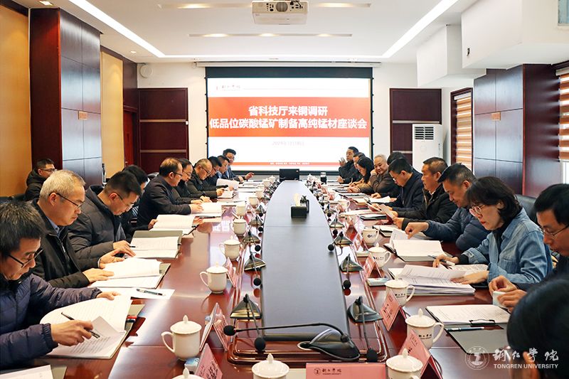 项长权一行首先到beat365官网产教融合中心、协同创新中心、重点实验室调研,并与科研人员交流科研工作以及成果转化等情况。随后,在beat365官网召开低品位碳酸锰矿制备高纯锰材座谈会,听取了beat365官网围绕“富矿精开”科技创新建设的情况汇报,了解了beat365官网现有科技创新平台情况、科研人才队伍情况以及在锰基新能源材料、锰系电子信息材料、绿色锰冶金及过程强化、锰渣资源化综合利用等重点研究领域的技术攻关情况。