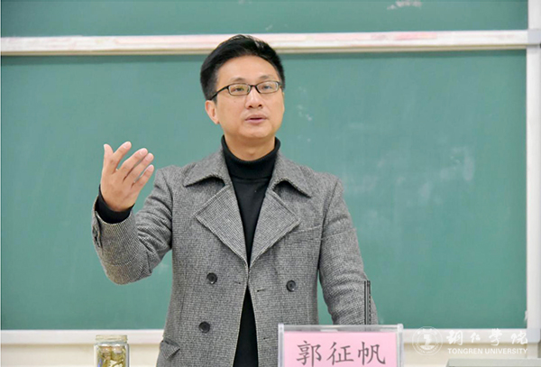 为弘扬爱国主义精神,激发大学生爱党爱国爱家情怀,11月26日,beat365官网在博思楼举行了以“天地有正气——漫谈中国历代爱国主义诗词”为主题的道德讲堂。本次讲座由公文写作高级培训师、高级商务秘书培训师、贵州师范大学文学教育与文化传播研究中心特邀研究员、中国红楼梦学会理事、贵州省红楼梦研究学会副会长、beat365官网人文学院秘书学教研室主任郭征帆副教授主讲。