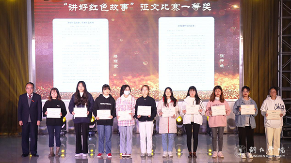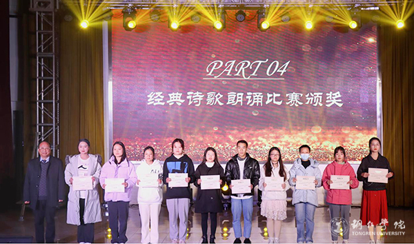 侯长林、代亮等嘉宾为获得经典诗词朗诵大赛、课堂教学技能比赛、粉笔字板书设计比赛、现场作文比赛等奖项的个人和团体颁发了证书。颁奖过程中,人文学院朗诵艺术团的同学们表演了侯长林教授的散文《即将辞去的旧楼》,以及人文学院教师向笔群的《中国,是一匹奔驰的马》、王晓旭的《奔跑着,春天奔跑着》、李胜勇的《过孟溪》等诗歌作品。
