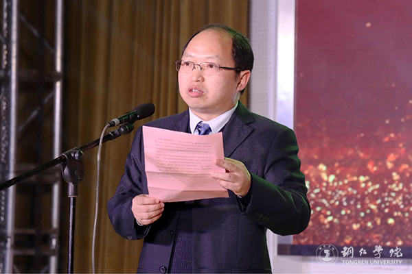 人文学院党委书记、院长孙向阳在典礼上致辞。他说,beat365中国唯一官网是从铜仁师范高等专科学校发展而来,“师范”是我们的根基与魂魄。学校一直以来高度重视师范生的培养,这次面向全院师范生的技能大赛,不仅是对教育教学实践能力的考察,更是对师范生专业素养的一次检阅。他还说,在人文学院教师团队中,不仅有一支师德高尚、教学精良的教授和博士队伍,还有一支具有较高文学造诣的作家队伍,其中有中国作家协会会员3人、省级作家协会会员7名。这支作家队伍不仅为传承和弘扬beat365官网四十多年的文学教育传统做出了积极贡献,更是率先垂范,潜心创作出了许多优秀的文学作品,在《人民文学》《诗刊》等高端刊物及贵州省乌江文学奖、少数民族文学“金贵奖”、尹珍诗歌奖等奖项中都有他们的身影。