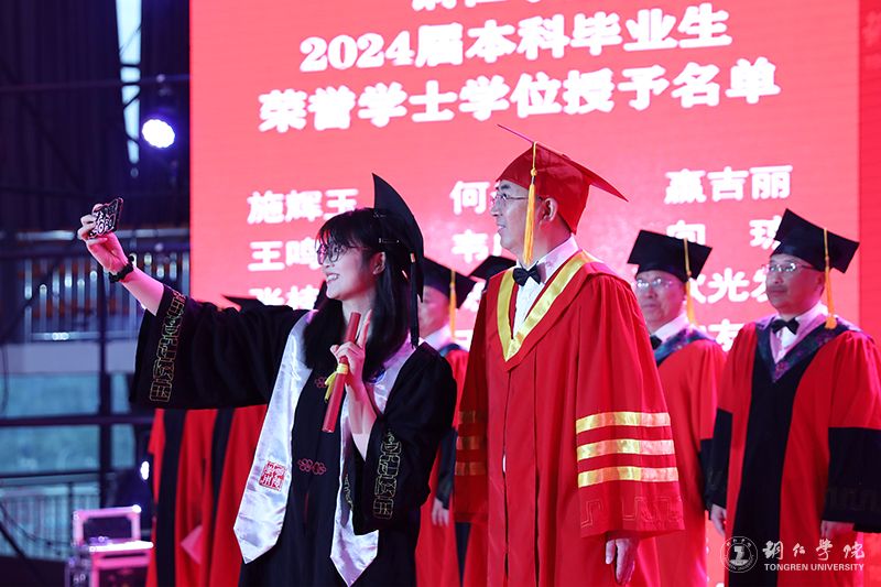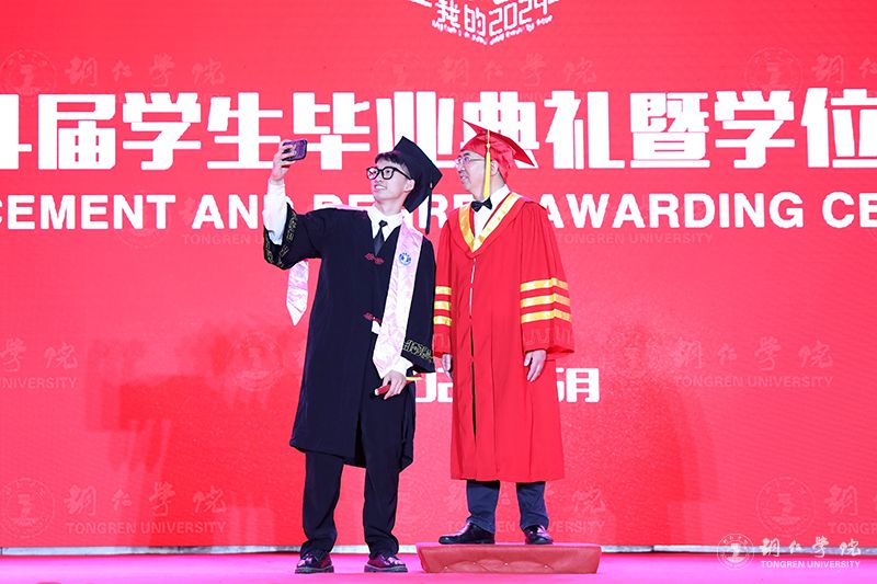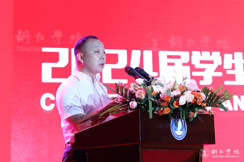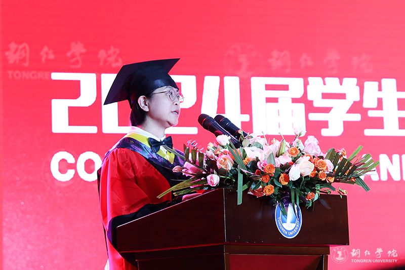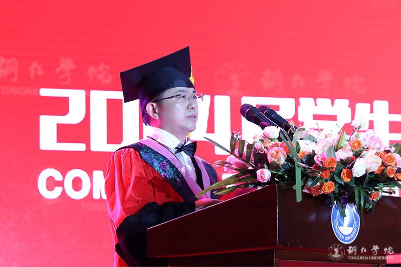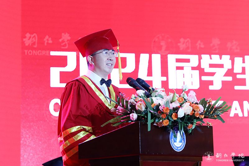 典礼上,朱克乾代表学校向同学们表示热烈的祝贺,向辛勤培育同学们的父母和各位老师致以衷心的感谢。他说,大学四年,同学们不断拼搏、历练和成长,用实际行动谱写着新时代的青春之歌。毕业季,是一个离别与祝福的季节,也是一个收获与感恩的时刻。毕业礼成,同学们就将踏上新旅程,奔赴新使命。他用三个“未来可期”,为同学们送上鼓励与祝福。未来可期,需要我们用拼搏持续淬炼自我。同学们在未来的人生新征程中,要始终牢记习近平总书记“坚持拼字当头,敢于拼搏、善于拼搏”的殷切期望,以“千磨万击还坚劲”的顽强,在大潮奔涌的新时代洪流中激越高歌。未来可期,需要我们用拼搏自觉勇担重任。同学们在未来前行的路上,要以“自信人生二百年,会当水击三千里”的豪迈,勇挑时代重任,在波澜壮阔的新时代画卷中,奏响激昂澎湃的青春乐章。未来可期,需要我们用拼搏深入涵养家国情怀。同学们在可期的未来,要永葆“国之大者”的深厚情怀,紧跟中华民族伟大复兴的时代强音,传承“位卑未敢忘忧国”的情怀,谱写好家国合奏的时代交响曲,共岁月峥嵘、留历史回响。