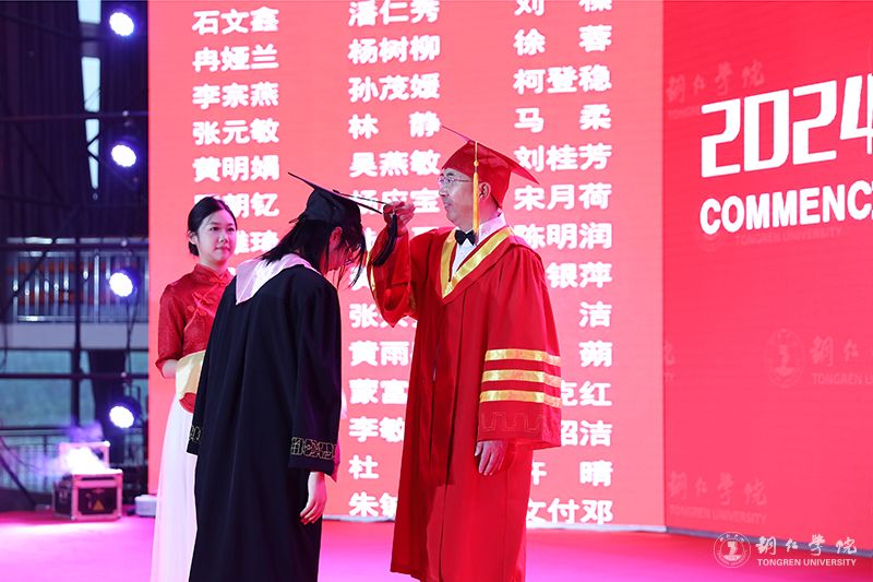 校长朱克乾为毕业生拨穗并颁发证书
