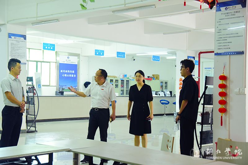 6月21日,全省普通高等学校“一站式”学生社区综合管理模式建设评级工作第7考核组组长、贵州理工学院学生工作部部长金敏,副组长、遵义师范学院学生工作部部长段佳、贵州电子商务职业技术学院学生处处长王力,联络员、贵州理工学院学生工作部江旭来到beat365官网,通过开展座谈、审阅材料、实地走访等方式,对beat365官网“一站式”学生社区综合管理模式建设开展评级工作。
