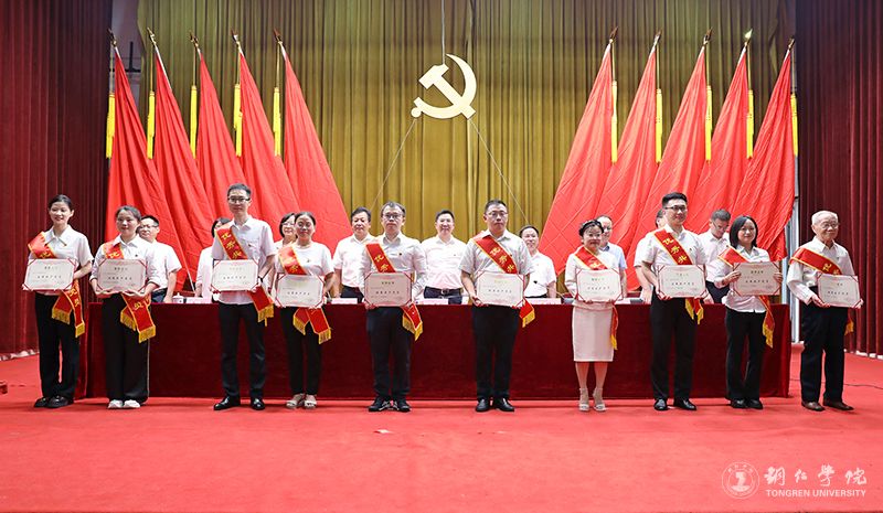 下午3点,大会在庄严肃穆的国歌声中拉开帷幕。随后,叶丹宣读了表彰文件;出席大会的校党委委员为先进基层党组织、优秀共产党员和优秀党务工作者代表进行了颁奖。本次大会,共表彰先进基层党组织12个、优秀共产党员40名、优秀党务工作者20名,以及直属党支部(退休党支部)先进基层党组织1个、优秀共产党员3名、优秀党务工作者3名。