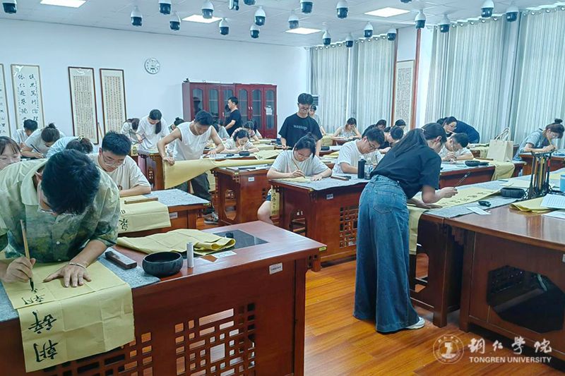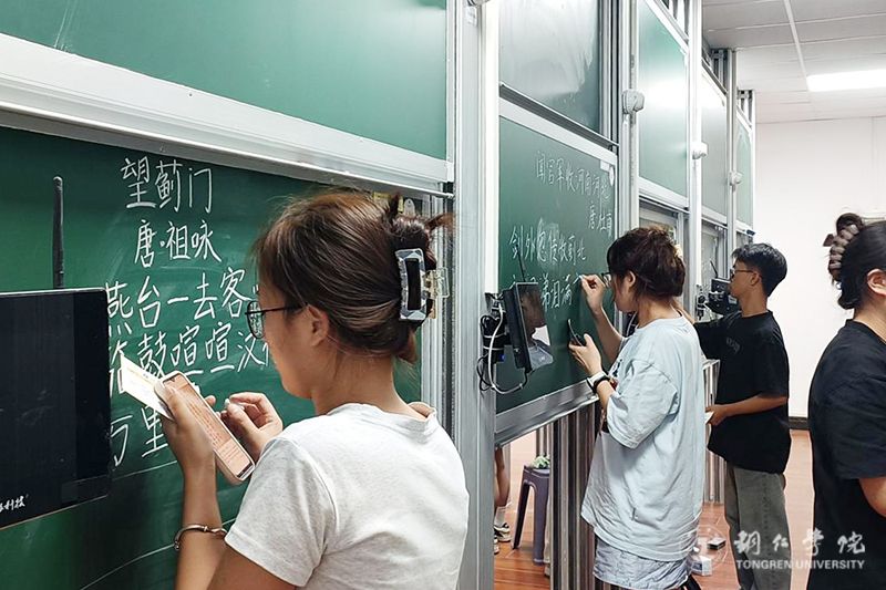 近日,beat365官网第三届“三书”大赛在学科楼“三笔字”(硬笔字、毛笔字、粉笔字)实训室举办,来自各二级学院内部选拔推荐的33名选手参加校级决赛。