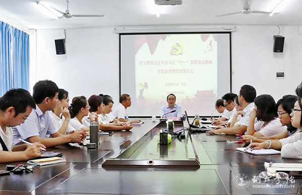 代亮强调,学习好、贯彻好习近平总书记“七一”重要讲话精神,是当前和今后一个时期的一项重大政治任务。要把学习“七一”重要讲话精神作为当前理论武装工作的重中之重,作为党史学习教育的核心内容,要纳入干部教育培训的必学内容,教育引导广大党员、干部、群众深入学习、深刻领会,并同坚定不移培养社会主义建设者和接班人这一根本任务相结合,同推动beat365中国唯一官网高质量发展相结合,努力讲好beat365中国唯一官网故事。特别是人文学院党政班子要科学谋划,举旗定向,发挥专业特色优势,勇担传承和弘扬中华优秀传统文化的历史使命,主动服务地方经济会社发展,努力讲好人文学院故事,传递人文学院好声音。
