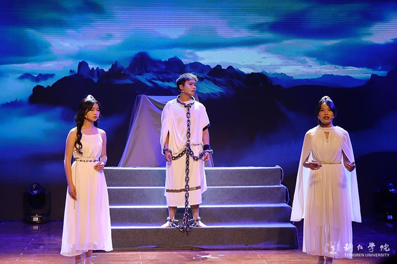 随着灯光渐暗,舞台上的帷幕缓缓拉开,一场震撼人心的视听盛宴正式开启。演员们全情投入,以精湛的演技生动地展现了普罗米修斯的勇敢、坚韧与不屈。诗剧中的台词铿锵有力,充满了力量感,仿佛带领观众穿越时空,回到了那个神话时代。观众们被这场精彩的演出深深吸引,他们的情绪随着剧情的发展而起伏,时而为普罗米修斯的遭遇而揪心,时而为他的勇敢而喝彩。演出结束后,现场响起了经久不息的掌声,这是对演员们精彩表演最充分的肯定,也是对此次活动成功举办的高度认可。