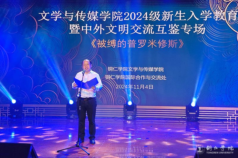 此次大型诗剧《被缚的普罗米修斯》的成功上演,不仅为文学与传媒学院2024级新生带来了一场别开生面的入学教育,同时也为全校师生提供了一个中外文明交流互鉴的平台。通过这场演出,大家更加深刻地感受到了中外文化的魅力,也进一步促进了不同文化之间的交流与融合。接下来,文学与传媒学院会紧扣立德树人根本任务和学校高质量发展重要目标,秉持“三全育人”教育工作理念,增强对大学生跨文化交流能力的培养力度,致力于提升大学生文化自觉和文化自信,让青年学生成为中华文化的传播者和创新者,为推动校园文化建设和中外文明交流做出更大的贡献。