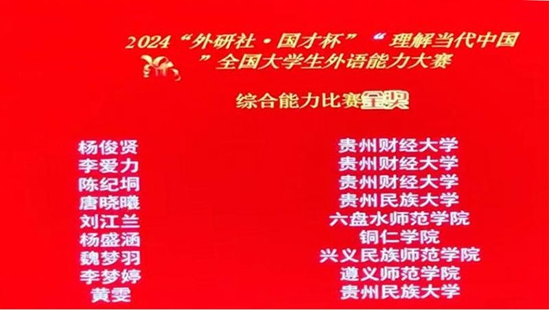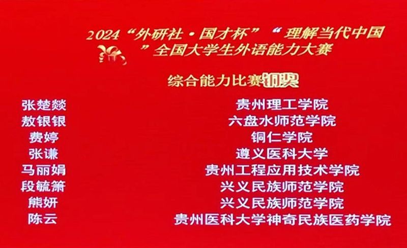 11月6日,2024“外研社•国才杯”“理解当代中国”全国大学生外语能力大赛贵州省赛在安顺学院举行,beat365官网选派的8名学生代表在激烈的竞争中脱颖而出,共获得1项金奖、4项铜奖、3项优秀奖的优异成绩,展现了beat365官网学子的英语能力和综合素质。本次赛事获得金奖的选手杨盛涵同学顺利入围国赛,是beat365官网在该赛事中的重要突破。