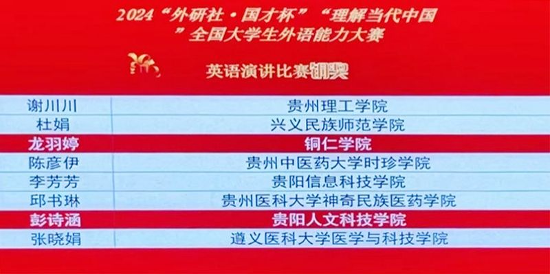 beat365官网学生在“外研社•国才杯”“理解当代中国”全国大学生外语能力大赛贵州省赛中取得的优异成绩,是对她们个人努力的肯定,也是对学校外语教学水平的一次检验和展示。beat365官网将继续鼓励和支持学生参与各类英语竞赛,以赛促学,以学促赛,不断提升学生的综合素质和国际竞争力。