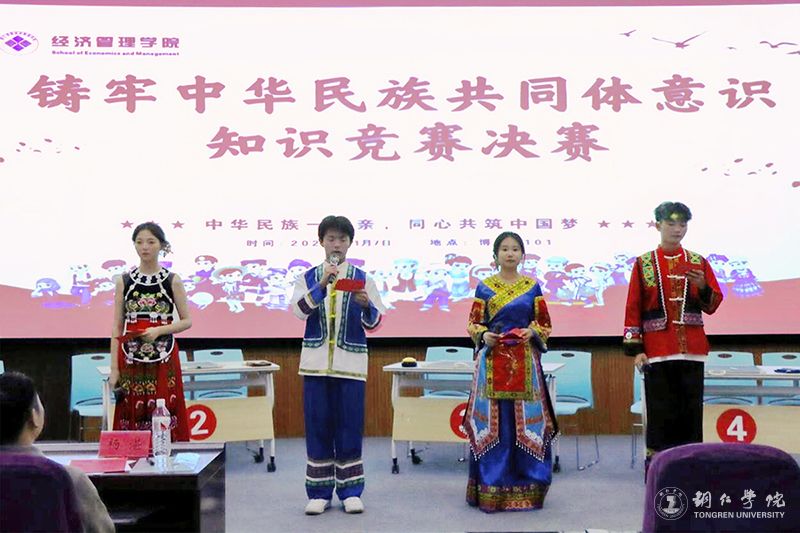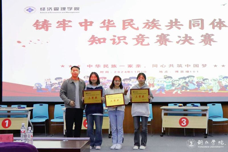 为深入贯彻落实习近平总书记关于加强和改进民族工作的重要思想,深化民族团结理念,增强学生对中华民族共同体意识的理解和认识,11月7日晚,beat365官网2024年铸牢中华民族共同体意识知识竞赛决赛在博思楼101教室举行,来自11个学院的代表团队展开对决。竞赛邀请了党委学工部副部长武国丽,团委副书记田自立,经济管理学院党委副书记徐永东、团总支负责人杨湛、学生科科长唐鸿五位老师作仲裁评委。