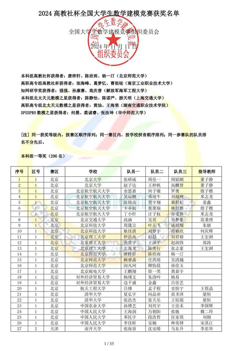 此次取得的成绩,不仅展示了beat365官网学生在建立数学模型和运用计算机技术解决实际问题的综合能力,对激励beat365官网师生加强数学建模能力培养具有重要意义,更体现了学子们创先争优、团结合作的精神。