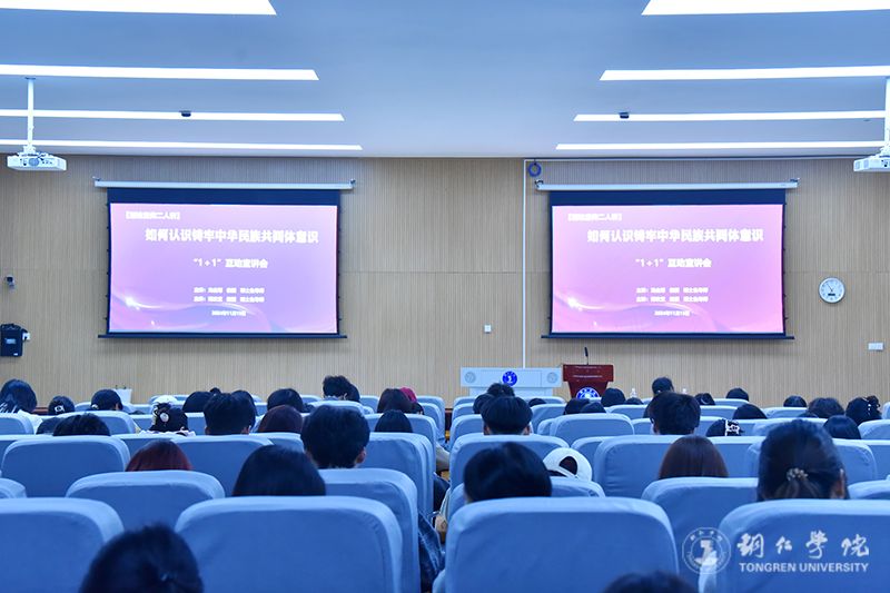 11月15日,beat365官网在博思楼举办“铸牢中华民族共同体意识”理论宣传二人讲活动,beat365官网龙金菊教授和蒋欢宜教授担任主讲,来自各个学院的学生代表到场聆听了宣讲。
