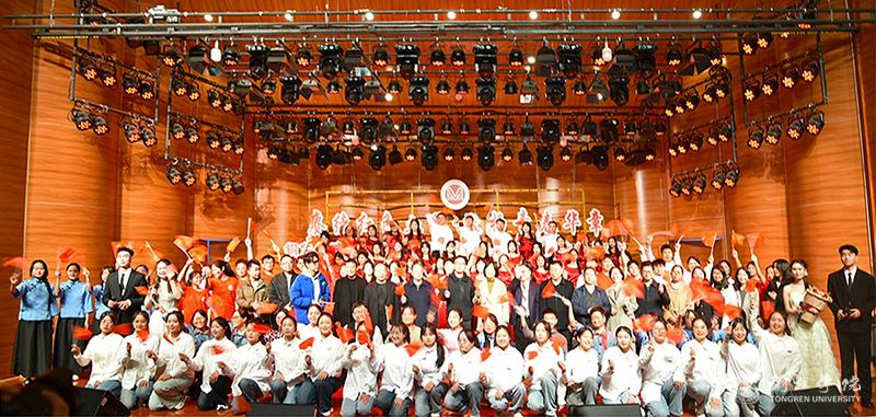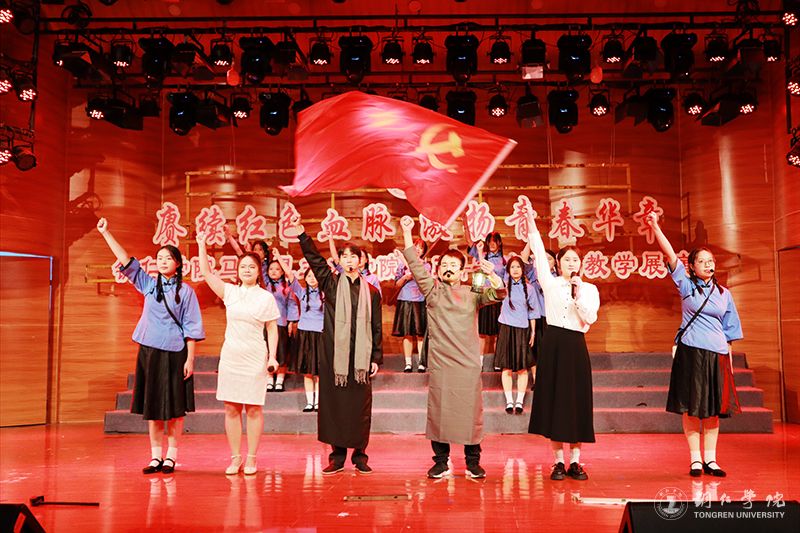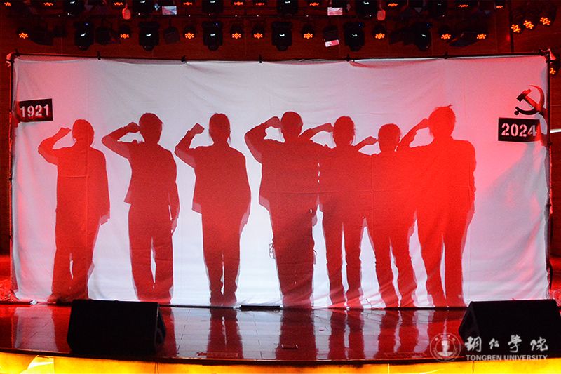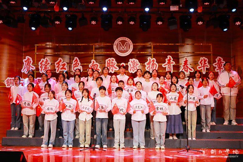 展演活动以“赓续红色血脉,激扬青春华章”为主题,通过歌曲、舞蹈、朗诵、情景剧等多种艺术形式,将思政教育与美育完美融合,生动展现了革命历史的壮丽画卷和新时代青年的青春风采。展演活动在光影交错的影子剧《中华崛起》中拉开序幕,同学们伴随激昂的配音,以饱满的情感,演绎着中国共产党诞生的伟大历程和一路走来的艰苦岁月。随后,一系列形式多样、内容丰富的节目轮番上演。朗诵《红船》,以生动的表演重现了新文化运动时期青年学子们为国家命运奔走呼号、奋勇抗争的场景;情景剧《困牛山的英雄赞歌》,深刻体悟到困牛山红军壮士们的 “绝对忠诚、信念坚定、勇于牺牲、赤诚为民” 的崇高精神;舞蹈《美好新生活》,表现了对中华民族一家亲的祝愿和对中国的繁荣以及美好生活的向往。最后,全体师生齐唱《歌唱祖国》,唱出了大家内心深处对祖国母亲的热爱和忠诚。