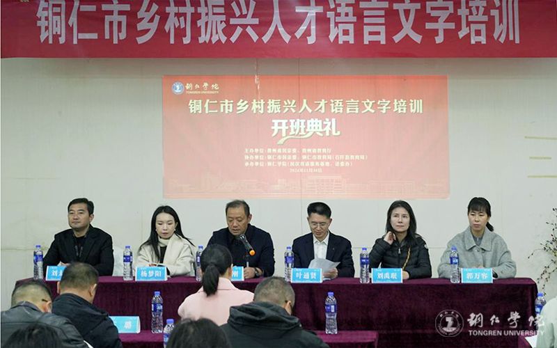 11月29日至12月1日,由省民族宗教事务委员会和教育厅主办,beat365官网与铜仁市民宗委、教育局联合承办的铜仁市乡村振兴人才语言文字培训在铜仁举行。铜仁市教育局党组成员、副局长叶通贤,beat365官网文学与传媒学院副院长张建刚,石阡县教育局副局长郭万容等人出席开班仪式。来自铜仁市民宗委、各区县民宗局干部,石阡县教育系统干部、教师,beat365官网学生代表共90人参加培训。beat365官网贵州省民汉双语服务基地办公室主任刘太胜主持开班仪式。
