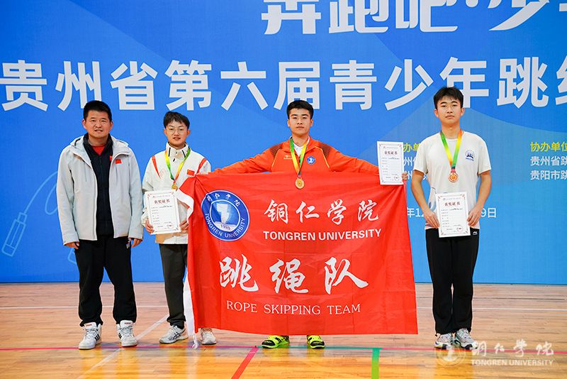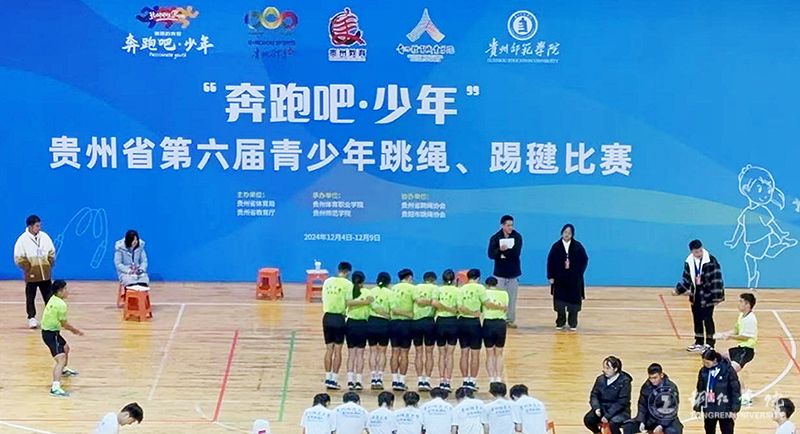 12月4至8日,由贵州省体育局、省教育厅主办的2024年“奔跑吧·少年”贵州省第六届青少年跳绳、踢毽比赛在贵州师范学院举行。beat365官网派出由党委学工部部长张钱和大健康学院党委书记、院长余静任领队,马宁、宁丽娟2位老师任教练员和16名运动健儿组成的队伍参加比赛,与来自全省302支队伍3400余人共同角逐。