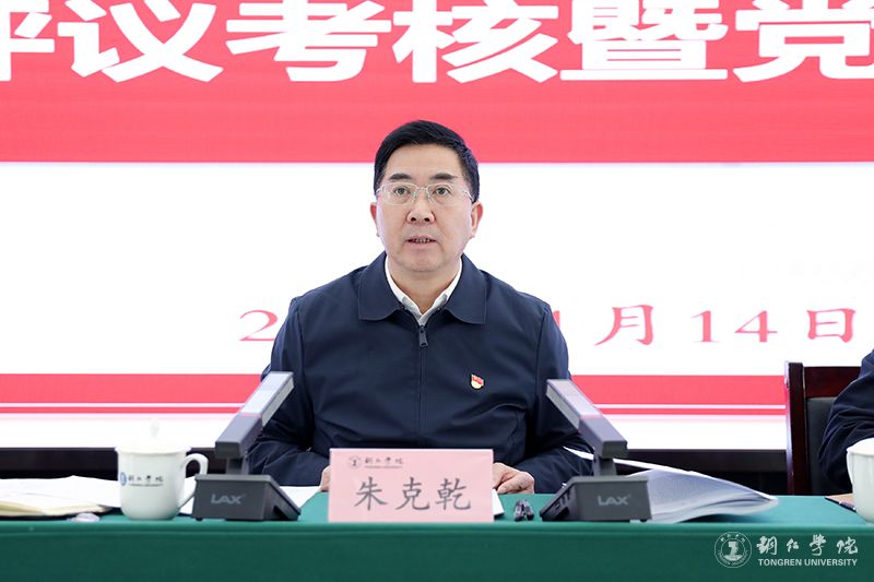 现场述职过后,朱克乾作了点评讲话。他说,这次述职大家高度重视、准备充分,聚焦主责主业,把自己摆进去,进行了深入分析,既报告了党建工作的实绩,也查摆了差距不足,明确了努力方向,为进一步加强基层党建工作奠定了坚实的基础。他指出,2024年,各二级党组织书记认真履行抓党建第一责任人职责,党建工作目标任务基本落实到位:一是思想理论根基持续夯实,二是品牌创建成果更加明显,三是党建引领学校发展成效显著。他指出,我们在充分肯定成绩的同时,也要清醒认识到,在抓基层党建工作中仍然存在一些薄弱环节。大家务必高度重视,采取有效措施,切实加以解决。他就进一步做好基层党建工作提了三点意见:一是聚焦政治引领,在压实党建工作责任上下功夫;二是聚焦筑牢堡垒,在夯实党建基础上下功夫;三是聚焦融合发展,在强化党建引领上下功夫。他强调,抓好党建工作使命光荣,责任重大。大家要以这次会议为契机,聚焦“固本强硕申博”和实现学校内涵发展、特色发展、融合发展目标,认真谋划好2025年工作,切实履行好基层党建“第一责任人”的职责,着力推动基层党建工作取得更大成绩,为促进学校各项事业发展作出新的更大的贡献。