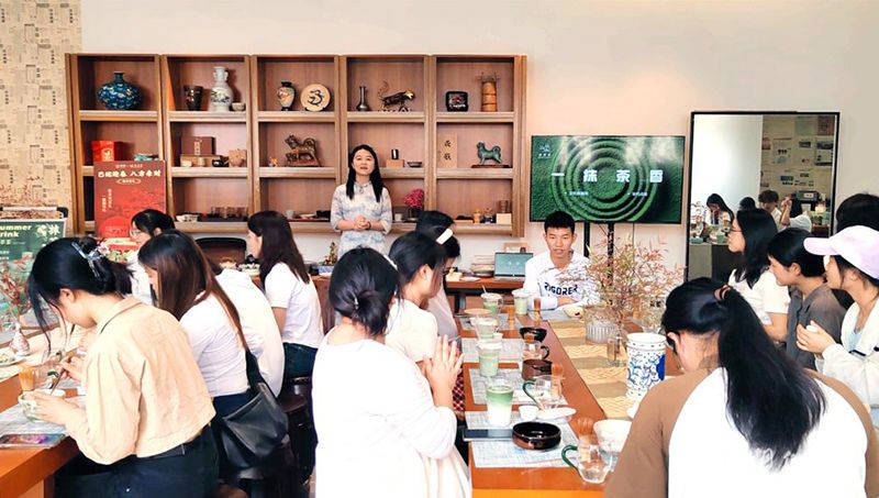 最后,现场还组织了研学交流会,同学们分享了点茶体验和对抹茶文化的感悟,气氛热烈活跃。国际学院鄢林楠说:“作为一名抹茶爱好者,我对抹茶的热爱早已融入骨髓,而这次活动,才让我真正领略到了中国抹茶文化的深厚底蕴,真正了解到铜仁作为抹茶之都的魅力。”大数据学院罗琳幽表示:“抹茶研学让我深刻体会到传统茶文化的魅力,对非遗文化有了全新认知。从点茶仪式开始,每一道工序都凝聚着匠人智慧。茶筅搅动的不仅是碧绿茶汤,更是浮躁心灵的沉淀。”经济管理学院王茹婷感慨到:“点茶不仅是一门技艺,更是一种生活态度,它教会了我如何在忙碌中寻找宁静,在品茶中感悟人生。这次体验不仅丰富了我的知识,更激发了我对传统文化的热爱与传承的决心。”