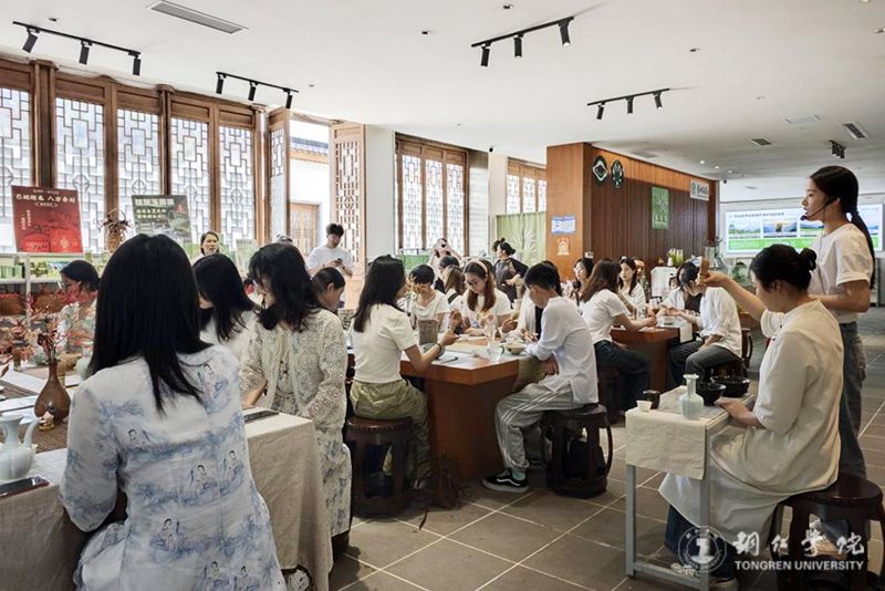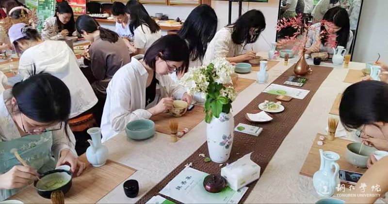 在点茶体验厅,同学们亲身践行抹茶制作的全流程。茶艺师身着传统服饰,优雅地展示和解说着宋代点茶技艺。温盏时,热水在盏中流转,似唤醒了沉睡的茶盏;调膏时,茶粉与水交融,散发出迷人的香气;击拂时,茶筅在茶汤中快速搅动,绵密的泡沫如雪花般层层涌起,茶汤表面还能绘制出独特的图案,宛如一幅细腻的中国水墨画。同学们在茶艺师的悉心指导下,亲自动手制作抹茶,细心调配茶粉与水的比例、调节击拂的力度和速度,直至茶汤渐渐泛起绵密的泡沫,似承载着传统与未来的一抹抹茶香便悠悠飘散在整个大厅。
