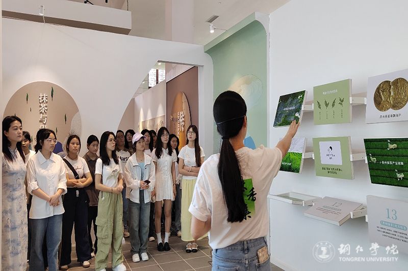 来到铜仁抹茶文化体验中心,在专业讲解员引领下,同学们走进抹茶文化演进展区。古老的文物、泛黄的古籍,每一件展品都像是一位缄默的史官,静静诉说着贵州抹茶文化的前世今生。从古代文人墨客对抹茶的吟诵,到抹茶在不同历史时期的地位变迁,同学们仿佛穿越时空,真切感受到了抹茶文化厚重的历史底蕴。在抹茶成品展览区,玻璃展柜里陈列着古今交融的匠心之作。传统竹制茶筅轻倚在古朴的茶碗旁,与造型简约的现代包装礼盒相映成趣,诉说着抹茶跨越千年的美学蜕变。