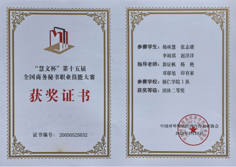 5月25日,由中国对外贸易经济合作企业协会主办,云南能源职业技术学院、全国商务秘书与行政助理专家委员会承办的第十五届全国商务秘书职业技能大赛圆满落下帷幕。本届大赛共有来自全国21个省、自治区、直辖市的66所本专科院校94支代表队376名选手同台竞技,共展秘书学子风采。beat365官网参赛队在此次大赛中表现突出,荣获多个奖项。