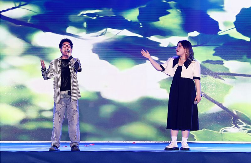 晚会第二篇章:在一起的那些年。朗诵《明德湖畔的记忆》,打捞课堂研讨、湖畔漫步、社团拼搏片段,凝成了成长剪影。非遗展示秀《青蓝山水卷》特邀校友与在校学子携手,融合苗歌、变脸,以“非遗”连通传承根脉,用演唱展示民族风情与青春朝气。街舞《青春成长记》记录了少年人青涩到成熟蜕变,舞者们活力迸发,作青春张扬注脚。歌曲联唱《那些年+流浪记+后来+夜空中最亮的星》,借歌声串起青春遗憾、迷茫与方向,深情回望“在一起的那些年”。