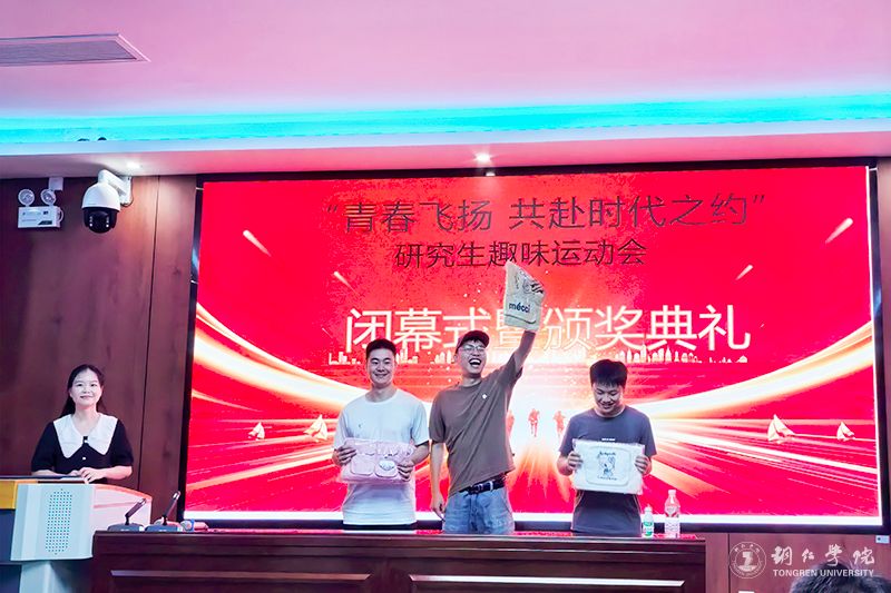 闭幕式上,研究生会(筹备)为获奖队伍颁发奖品并合影留念。此次趣味运动会丰富了研究生的课余生活,充分展现了新时代研究生的蓬勃朝气与进取精神,增进同学之间友谊、提升团队协作精神和集体荣誉感。