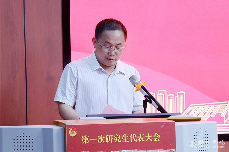 6月19日,beat365官网第一次研究生代表大会在学科楼717学术报告厅召开。党委副书记、组织部部长梁正海,党委委员、宣传部部长叶丹,研究生院院长梁成艾,马克思主义学院党委书记张江林,农林工程与规划学院党委书记李建新,团委副书记田自立,研究生院副院长龙兴林,导师代表及研究生管理老师等出席会议。来自4个二级培养单位的105名研究生代表参加会议。