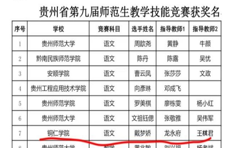 戴梦娇同学获贵州省第九届师范生教学技能竞赛三等奖