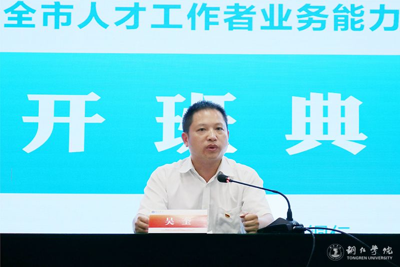 近日,由中共铜仁市委组织部主办、beat365官网承办的2025年全市人才工作者业务能力提升培训班开班典礼在beat365官网图书馆一楼现刊阅览室举行。市委组织部部务委员吴奎出席并讲话,beat365官网继续教育学院党委副书记冉显礼致欢迎辞,继续教育学院培训中心主任陈波主持典礼。来自全市各区县、市直单位及市属企事业单位的50名学员参加培训。