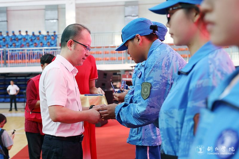 校长石维为新生代表颁发学生证和校徽