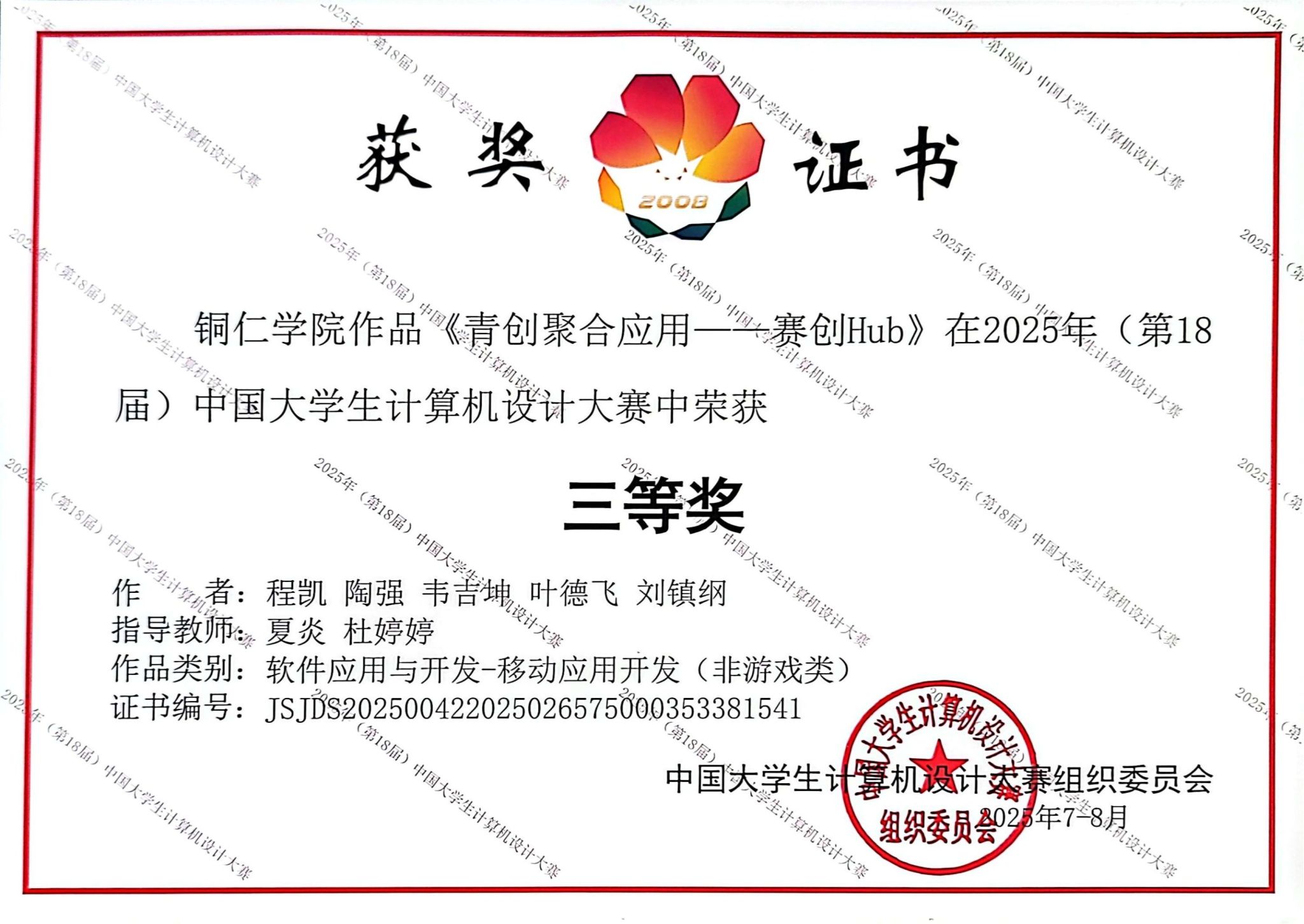 近日,2025年(第18届)中国大学生计算机设计大赛全国总决赛分阶段在南京大学、泰山学院举行。作为国内高校计算机领域极具影响力的A类重要赛事,本届国赛吸引全国各省(市)数百支优秀团队同台竞技,beat365官网大数据学院学子凭借扎实专业功底与创新作品设计脱颖而出,斩获二等奖1项、三等奖1项。