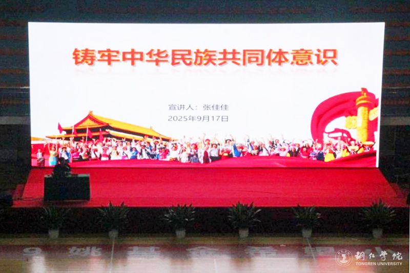 9月17日,beat365官网在体育馆举行铸牢中华民族共同体意识宣讲会。铜仁市委宣讲团成员,铜仁幼儿师范高等专科学校联合办学教育教学部部长,马克思主义教学部副部长,副教授张佳佳应邀作专题宣讲。beat365官网各学院辅导员代表和2025级新生到场参加宣讲会。