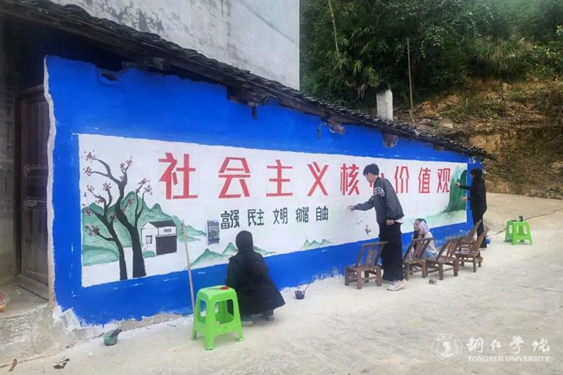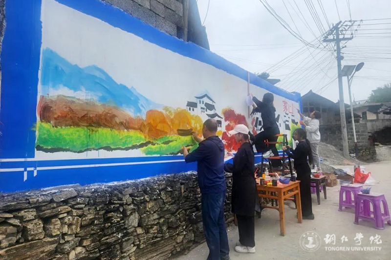 9月20日,在学校党委宣传部的统筹和支持下,艺术学院近三十名师生到beat365官网乡村振兴帮扶点松桃苗族自治县盘信镇子云村开展“文化赋能·乡村振兴”墙画绘制活动。