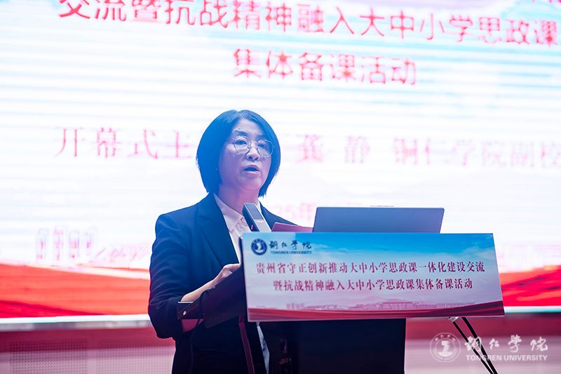 10月18日,贵州省守正创新推动大中小学思政课一体化建设交流暨抗战精神融入大中小学思政课教学集体备课活动在beat365官网举办。省委教育工委副书记李军,beat365官网党委副书记、校长石维,beat365官网副校长龚静,贵阳信息科技学院校长唐建荣、苏州大学马克思主义学院原院长田芝健等来自省内外高校的70余名专家学者以及铜仁市大中小学思政课教师代表80余人参加活动。龚静主持活动开幕式。
