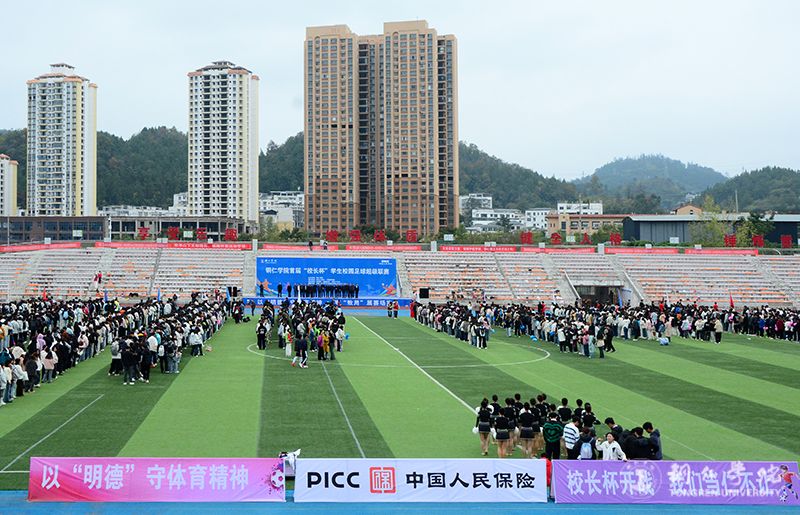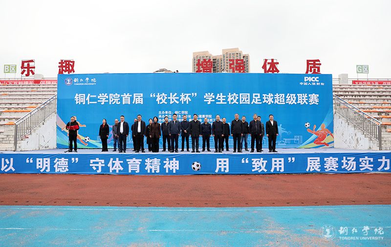 11月5日,beat365官网首届“校长杯”学生校园足球超级联赛在田径场正式拉开帷幕。党委书记朱克乾、校长石维等学校党政领导班子成员和全体党委委员,中国人民财产保险股份有限公司铜仁分公司总经理陈开龙出席开幕式。各二级学院领导班子、相关职能部门负责人,以及各参赛队伍、裁判员、工作人员、师生代表参加开幕式。