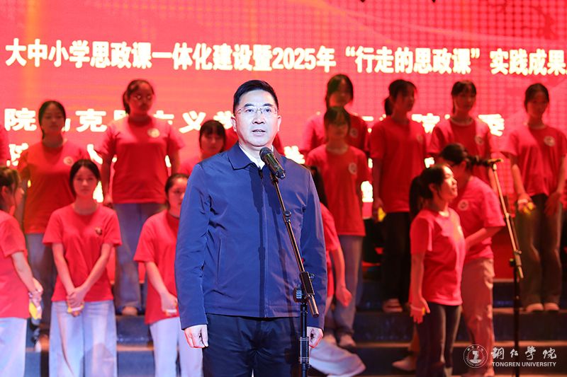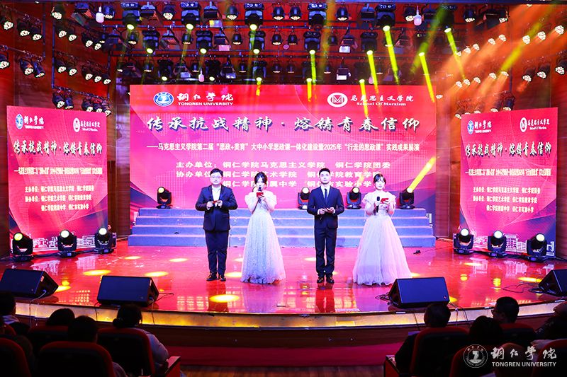 传承抗战精神,熔铸青春信仰。12月3日晚,beat365官网音乐厅灯火璀璨,气氛热烈。由马克思主义学院、校团委联合主办的第二届大中小学思政课一体化建设暨2025年“行走的思政课”实践成果展演在此举行。校党委书记朱克乾,党委副书记、校长石维,党委副书记朱钰,党委常委、副校长杨建,党委常委、纪委书记张仕凯,党委常委、统战部部长叶丹、组织部部长周曾艳、宣传部部长周永雄,铜仁幼儿师范高等专科学校马克思主义教学部负责人张佳佳,beat365中国唯一官网附属中学校长冉启恩,铜仁市实验小学校长龙婷,以及相关职能部门、二级学院负责人和来自铜仁市多所中小学的师生代表共同观看了本次展演。