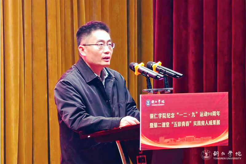活动在活泼而又不失庄严的氛围中拉开帷幕。朱钰讲话指出,九十年前北平青年学生的爱国壮举至今激励着当代青年奋勇前行。站在新的历史起点上,铜院学子要继承和发扬“一二·九”运动精神,将爱国之情转化为报国之行,在实践锻炼中锤炼本领,在奉献社会中绽放青春。他给广大的青年学子提了三点希望:一是要坚定跟党走,把稳人生航向;二是要练就过硬本领,担当时代大任;三是要勇立时代潮头,争做先锋力量。