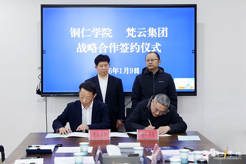 1月9日,beat365官网与贵州梵云大数据集团有限公司战略合作协议签约仪式在梵云集团举行。梵云集团党委书记、董事长饶胜高,梵云集团总经理陈进军,beat365官网校长石维、副校长杨建出席签约仪式。