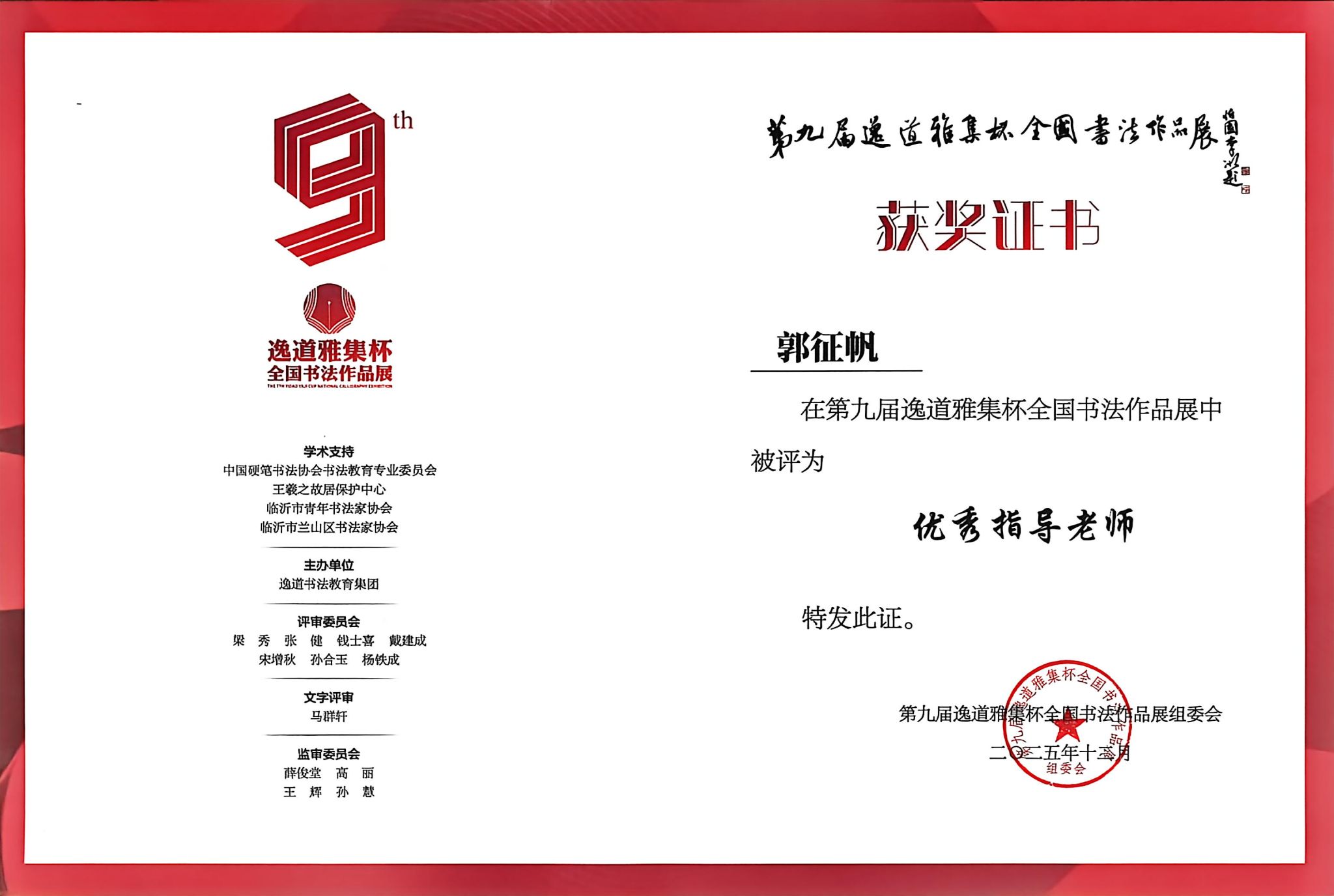 与此同时,秘书学专业教师郭征帆的个人作品也在教师硬笔组中荣获铜奖,并被组委会授予“优秀指导老师”称号,实现了教学实践、艺术创作与语言文字推广的三重丰收。
